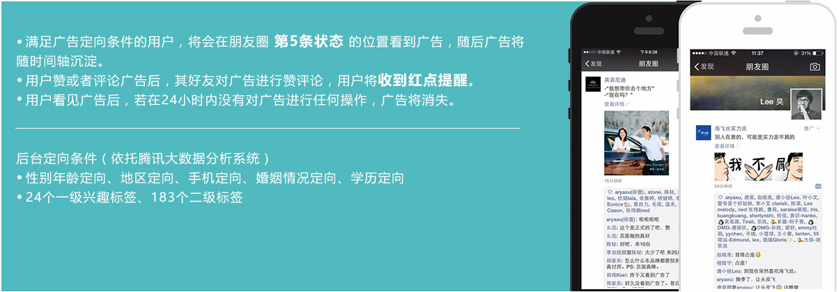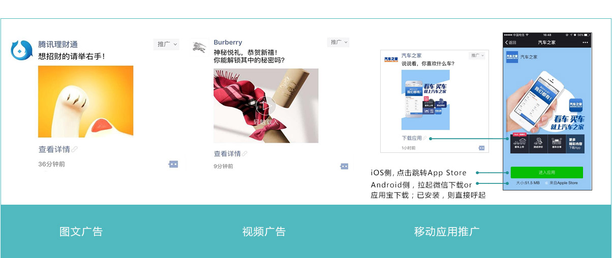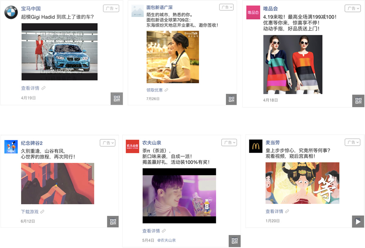以类似朋友的原创内容形式进行展现,在基于微信用户画像进行定向的同时,